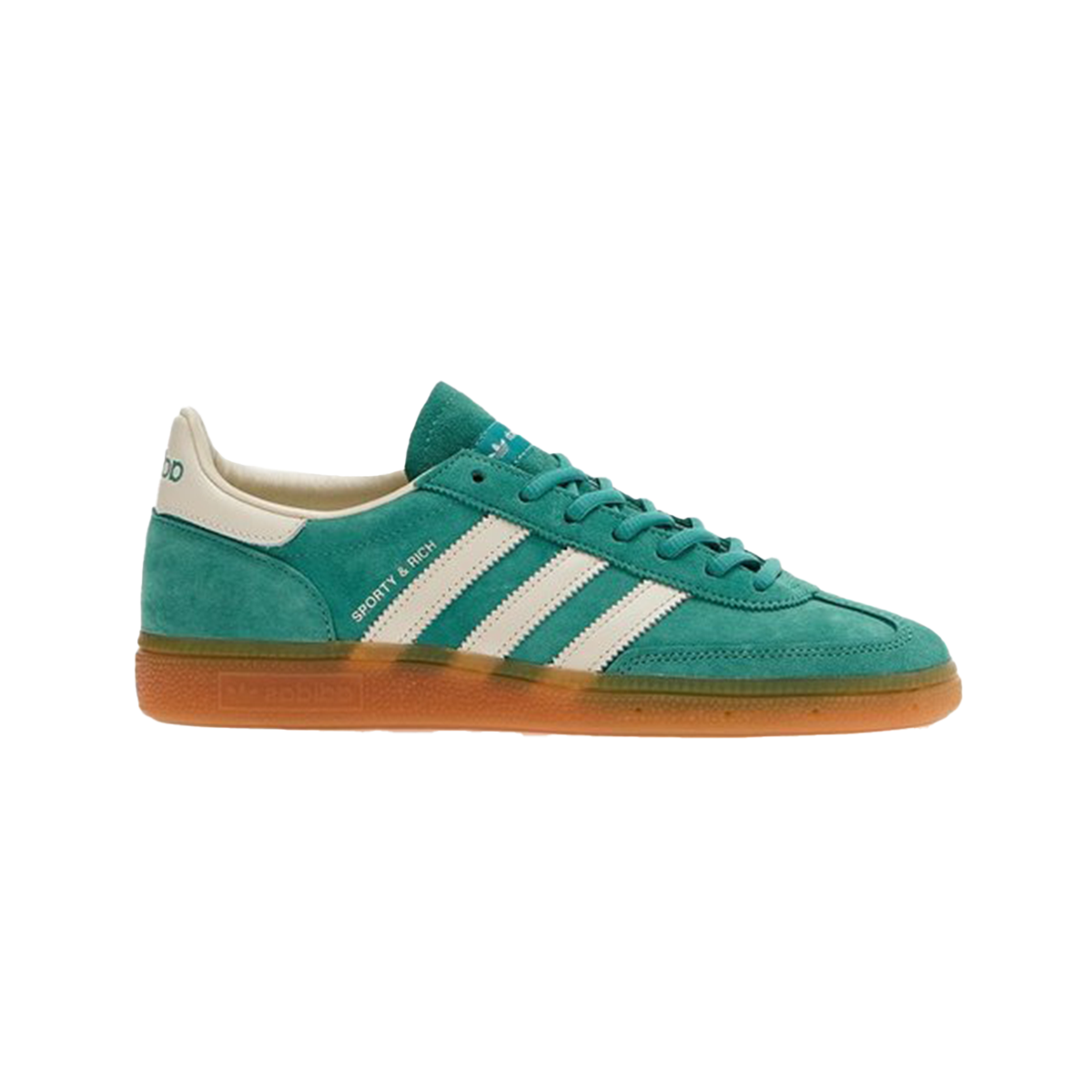 Introducing the Adidas Handball Spezial Sporty & Rich Green – a sophisticated collaboration merging Adidas' iconic style with Sporty & Rich's contemporary aesthetic. These sneakers feature a vibrant green colorway that enhances the classic Handball Spezial silhouette. Crafted from premium suede with a durable rubber outsole, they ensure superior comfort and longevity. Unique branding details reflect the partnership, combining the timeless appeal of Adidas with Sporty & Rich's modern, wellness-oriented ethos. Perfect for sneaker enthusiasts and fashion-forward individuals, the Adidas Handball Spezial Sporty & Rich Green is a standout addition to any collection. Available now in limited quantities.