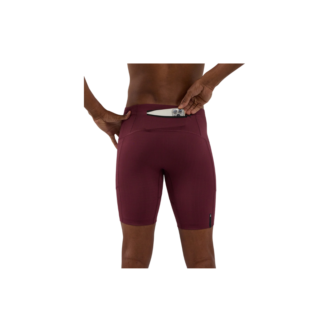The Next Gen Half Tight in our Gridlock™ fabric, with an optimized gusset, offers 7 pockets: 2 iPhone-sized with waterproof liners, 4 gel-sized, 1 zippered stash. Italian grip tape prevents ride-up, with double-layered front fabric, a drawstring, silicone patch and clamp at wearer's right back leg.