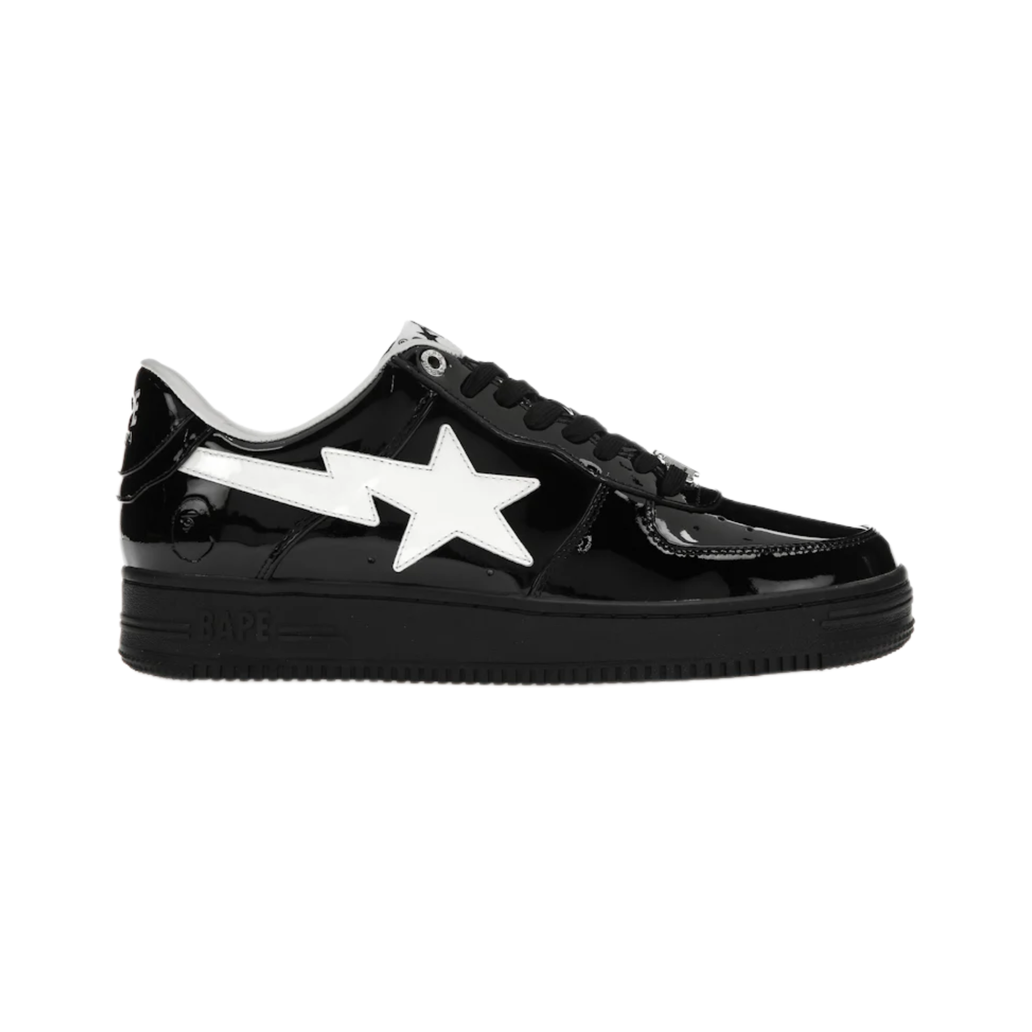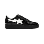 Discover the iconic A Bathing Ape Bape Sta #2 in Black Patent. Known for its unique design and superior craftsmanship, this stylish sneaker combines luxury with streetwear aesthetics. Featuring a glossy black patent leather finish, the Bape Sta #2 is both eye-catching and versatile, perfect for making a bold fashion statement. Elevate your footwear collection with this must-have piece from A Bathing Ape.