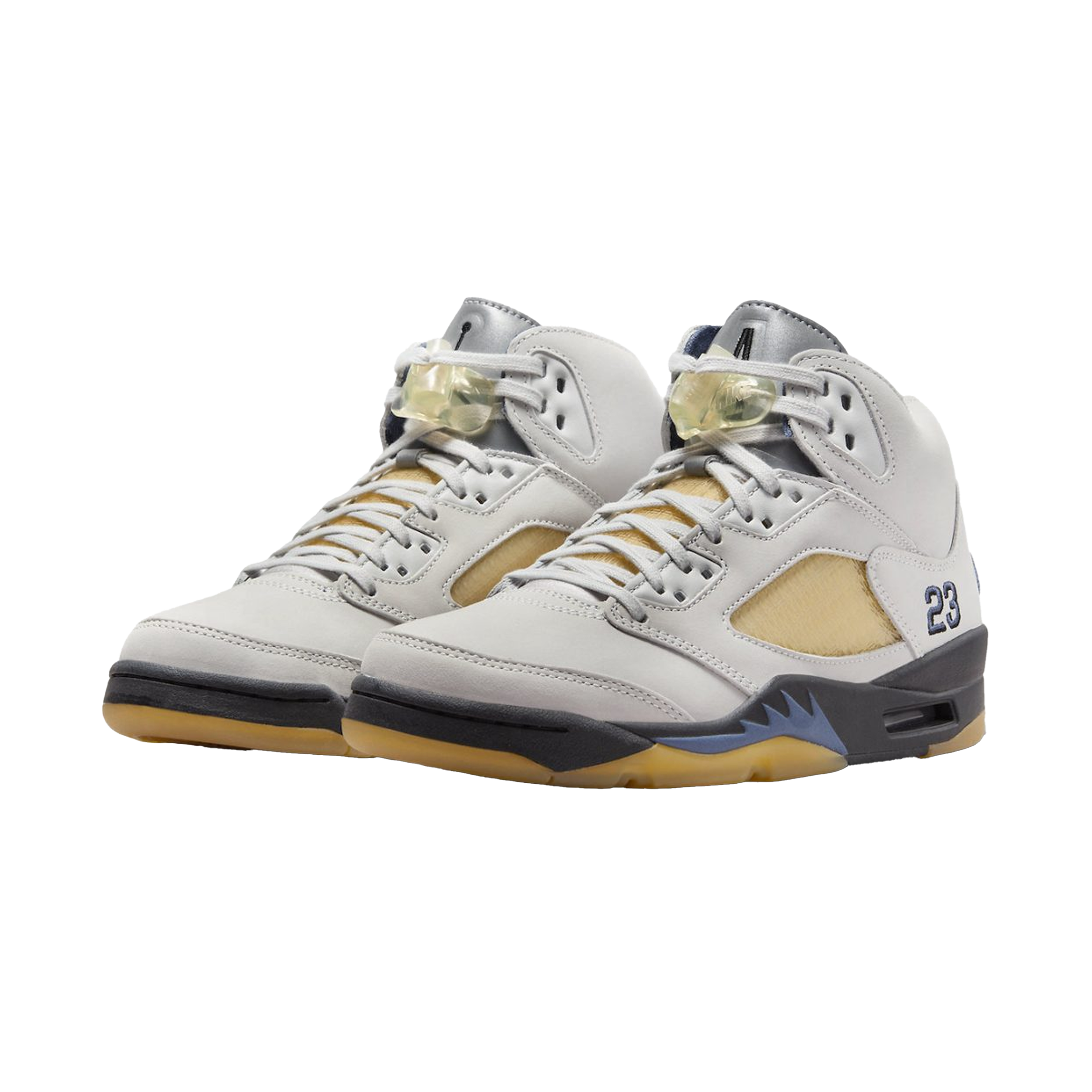 Air Jordan 5 Retro A Ma Maniére Dawn Women's – premium women's high-top sneakers in light grey suede, collaborative design by A Ma Maniére and Jordan Brand, quilted lining, translucent outsole, vintage midsole finish, luxury streetwear basketball shoes
