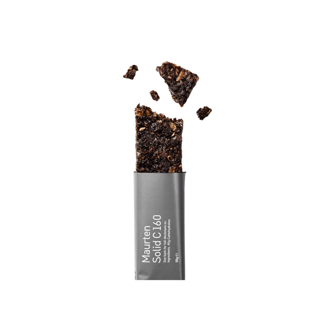 Maurten Solid C 160 fits seamlessly into your modular fueling system, allowing athletes to measure energy intake consistently across gels, drinks, and bars. The bar’s chewy texture provides a satisfying break from liquid fuels while maintaining precise carbohydrate delivery.