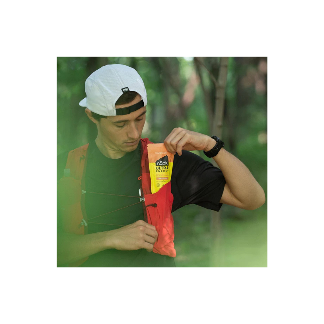 Näak Ultra Energy™ Drink Mix – Peach Apricot flavor – delivers 250 calories per 500ml of water, providing a fast-acting, easy-to-digest source of complete nutrition for endurance athletes. Made with 11% upcycled ingredients, it’s designed to keep you performing at your best while reducing environmental impact.