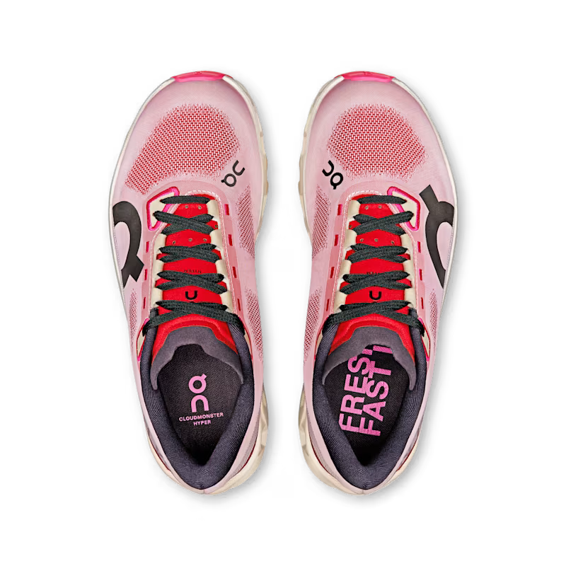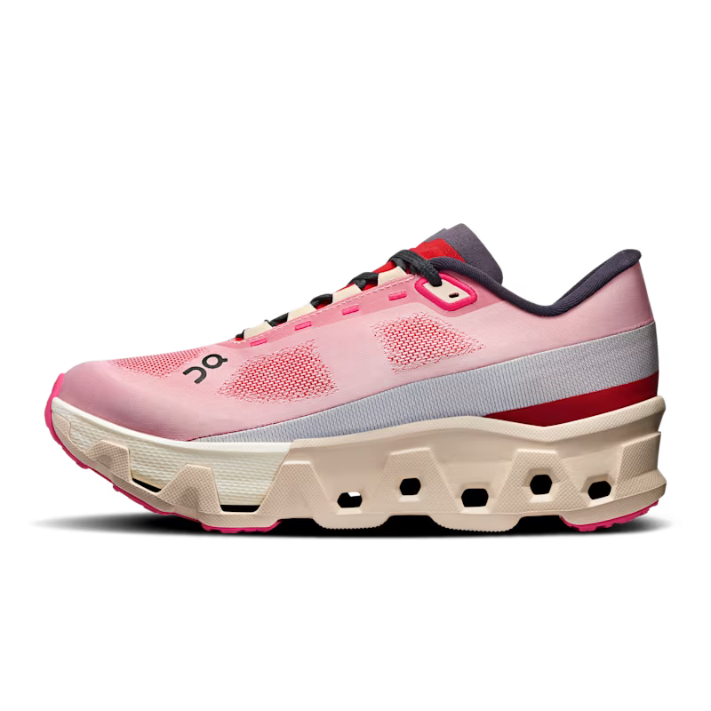 Introducing the On Running Cloudmonster Hyper W in Red | Cream—a bold fusion of high-performance technology and dynamic design for the adventurous runner. Engineered with On’s innovative CloudTec® cushioning, the Cloudmonster Hyper W provides ultra-soft landings and a powerful rebound with each stride. The striking Red | Cream colorway adds a vibrant, energetic look while maintaining a modern and sleek design. The breathable mesh upper ensures comfort and ventilation, even during intense runs, while the Speedboard® technology maximizes energy return, propelling you forward with every step. The durable rubber outsole delivers exceptional traction and stability, making the Cloudmonster Hyper W ideal for both trail and road running. Whether you're tackling tough terrain or pushing your limits on race day, the Cloudmonster Hyper W in Red | Cream offers a perfect combination of style, comfort, and performance.