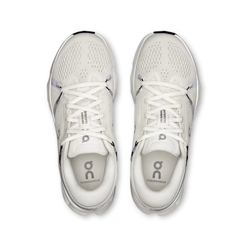 Introducing the On Running Cloudsurfer 2 W in Ivory | Ivory—a seamless blend of cushioning, performance, and minimalist design for the modern runner. Featuring On’s signature CloudTec® technology, the Cloudsurfer 2 W provides soft landings and responsive propulsion with every stride. The sleek all-Ivory colorway offers a sophisticated, clean aesthetic, while the lightweight, breathable mesh upper ensures optimal ventilation and comfort during your run. Enhanced with Speedboard® technology, this shoe maximizes energy return, making each step smoother and more efficient. The durable rubber outsole provides superior traction, ensuring stability on both wet and dry surfaces. Whether you're racing, training, or enjoying a long-distance jog, the Cloudsurfer 2 W in Ivory | Ivory delivers the perfect combination of performance, style, and comfort.