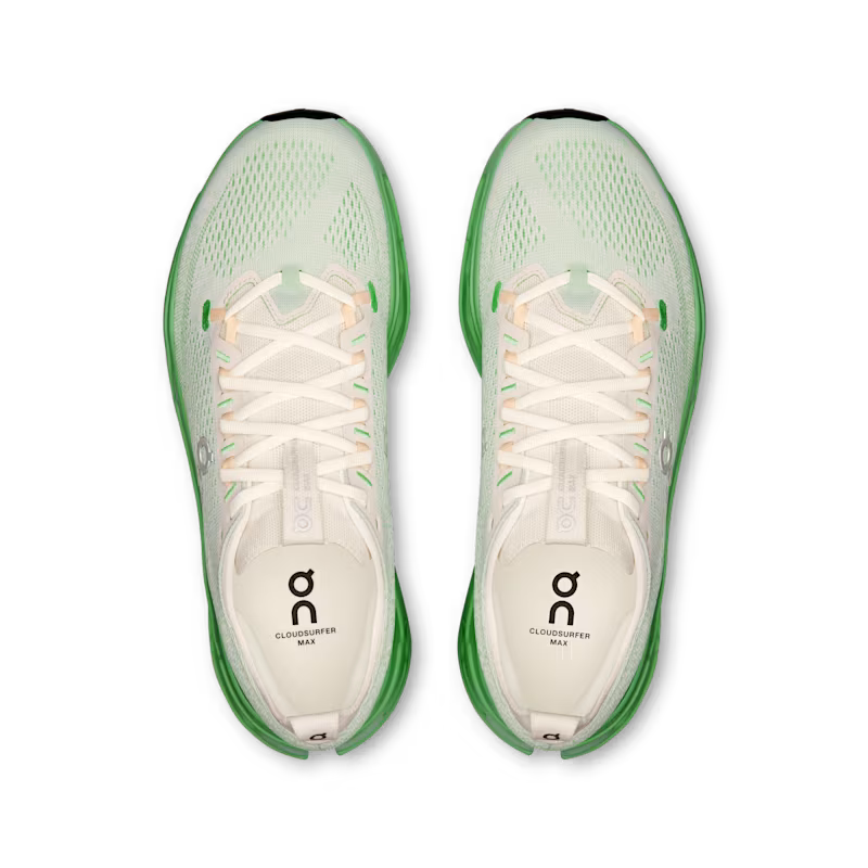 Introducing the On Running Cloudsurfer Max M in Ivory | Honeydew—a perfect fusion of advanced cushioning, responsive performance, and modern design. Crafted for runners who demand ultimate comfort, the Cloudsurfer Max M features On’s CloudTec® Max cushioning, offering soft landings and a dynamic rebound with every stride. The Ivory | Honeydew colorway brings a fresh, stylish aesthetic while the lightweight, breathable mesh upper ensures optimal comfort and ventilation during your runs. Enhanced with Speedboard® technology, this shoe maximizes energy return, providing an efficient and fast stride. The durable rubber outsole offers superior traction and stability on various surfaces, making the Cloudsurfer Max M ideal for both intense training and race-day performance. Whether you're training, racing, or going for a casual run, the Cloudsurfer Max M in Ivory | Honeydew delivers the perfect balance of comfort, performance, and style.