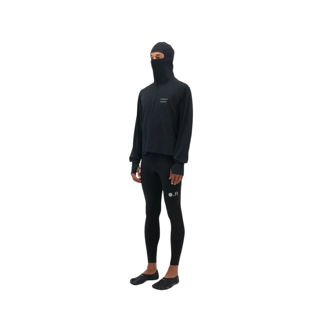 The Optimistic Runners Balaclava Hoodie is built to keep you warm and protected during winter runs, featuring an integrated heating balaclava hood for added coverage in cold conditions. Designed with reflective elements for visibility, it includes a practical chest pocket, watch windows on the sleeves for easy access, and thumb holes for secure, comfortable layering, combining warmth with functional performance.