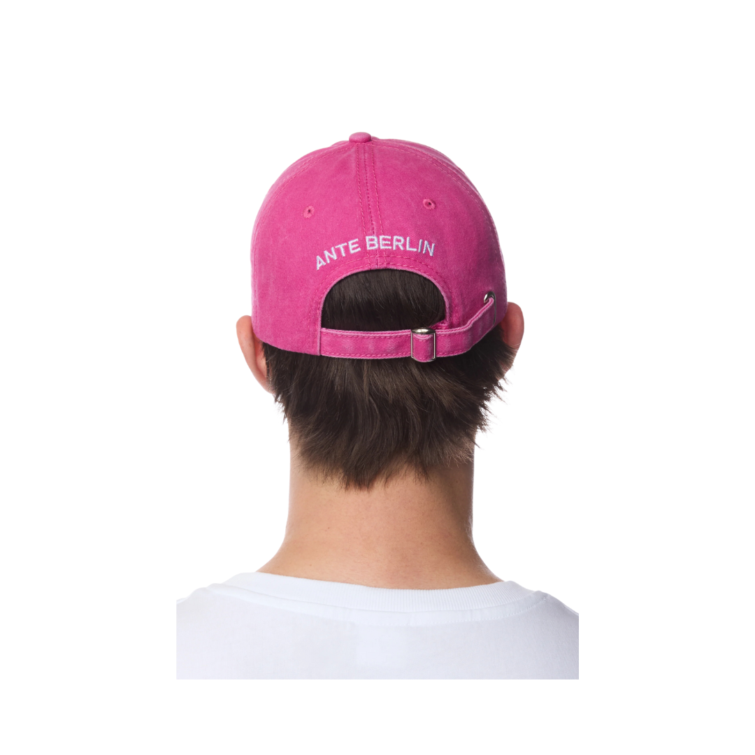This baseball cap, finished in a unique faded pink wash, showcases a tailored 6-panel design with a silver adjustable closure. The front proudly displays our signature Souvenir embroidery, celebrating our Berlin heritage, while the back features a discreet logo detail for a refined touch.