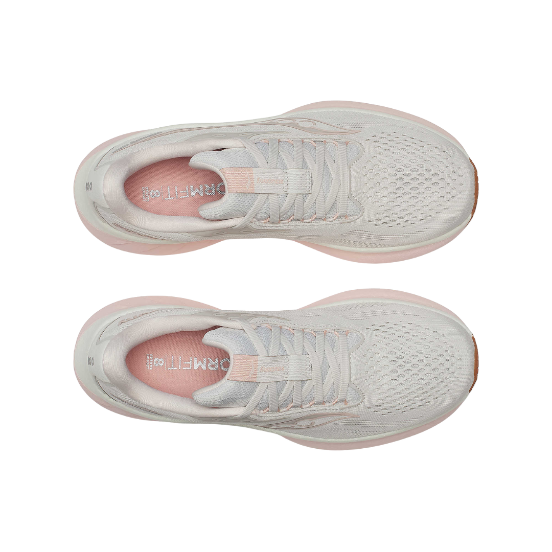 Introducing the Saucony Ride 18 W in Quartz | Peony—a versatile, neutral daily trainer designed for comfort and responsiveness. Featuring the upgraded PWRRUN+ foam, this shoe offers a lighter, softer, and more responsive ride, making it suitable for various activities. The engineered mesh upper enhances breathability and stretch, while the increased XT-900 rubber coverage on the outsole improves durability and traction. With an 8mm drop and weighing approximately 8.0 oz (228g), the Ride 18 W provides a balanced and comfortable fit for neutral runners seeking a reliable everyday shoe.