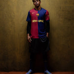 Each jersey is individually numbered from 1 to 1,899 on the inside This collaboration features the iconic "Cactus Jack" logo, representing Travis Scott's brand, prominently displayed on the chest, replacing the traditional Spotify sponsor logo. The design maintains the classic Blaugrana colors, blending the club's heritage with Scott's unique artistic flair. This partnership is part of FC Barcelona's ongoing initiative to merge music and football, having previously collaborated with artists like Drake, Rosalía, and Coldplay. In conjunction with the jersey release, Travis Scott is set to perform an exclusive concert in Barcelona on May 10, 2025, further celebrating this fusion of sports and music