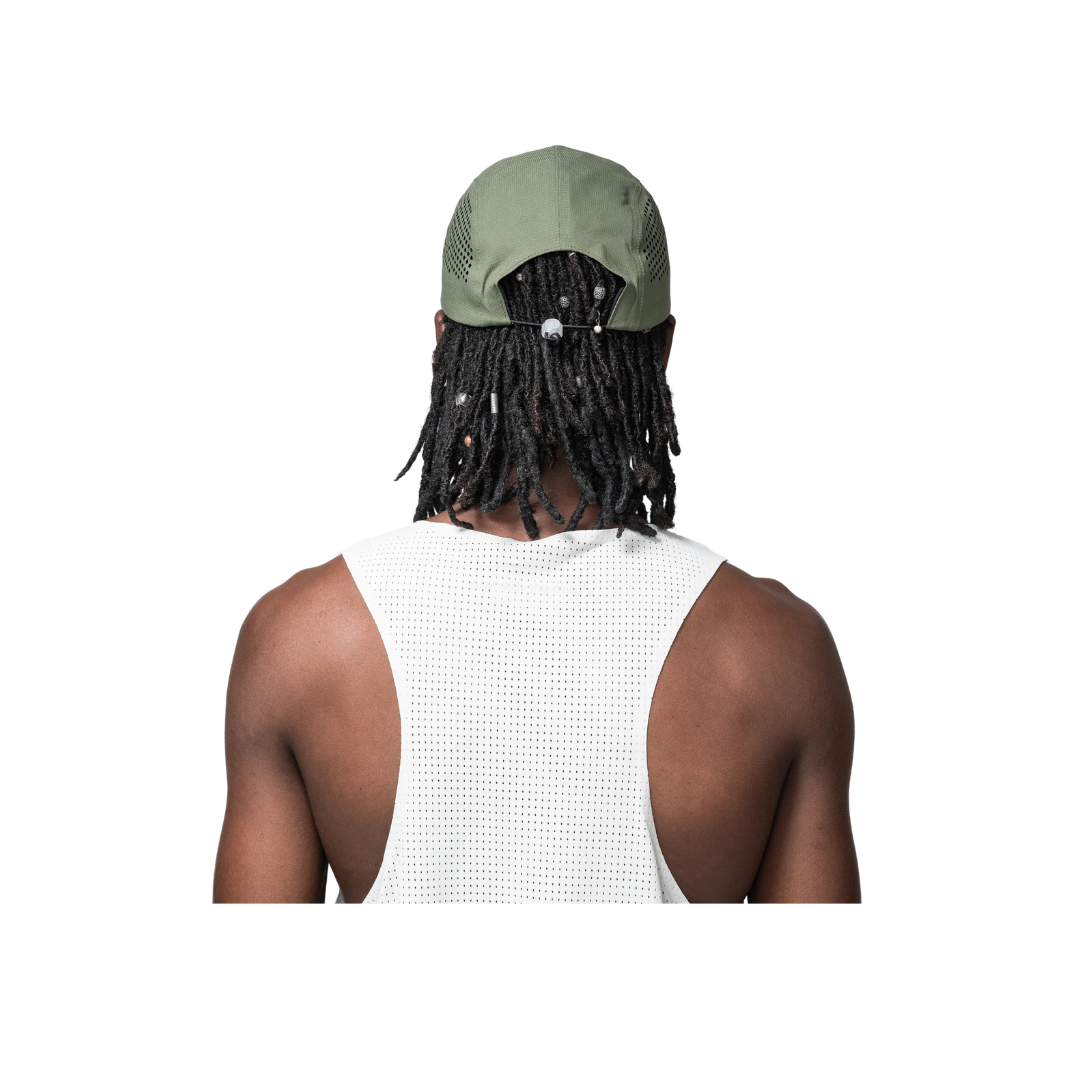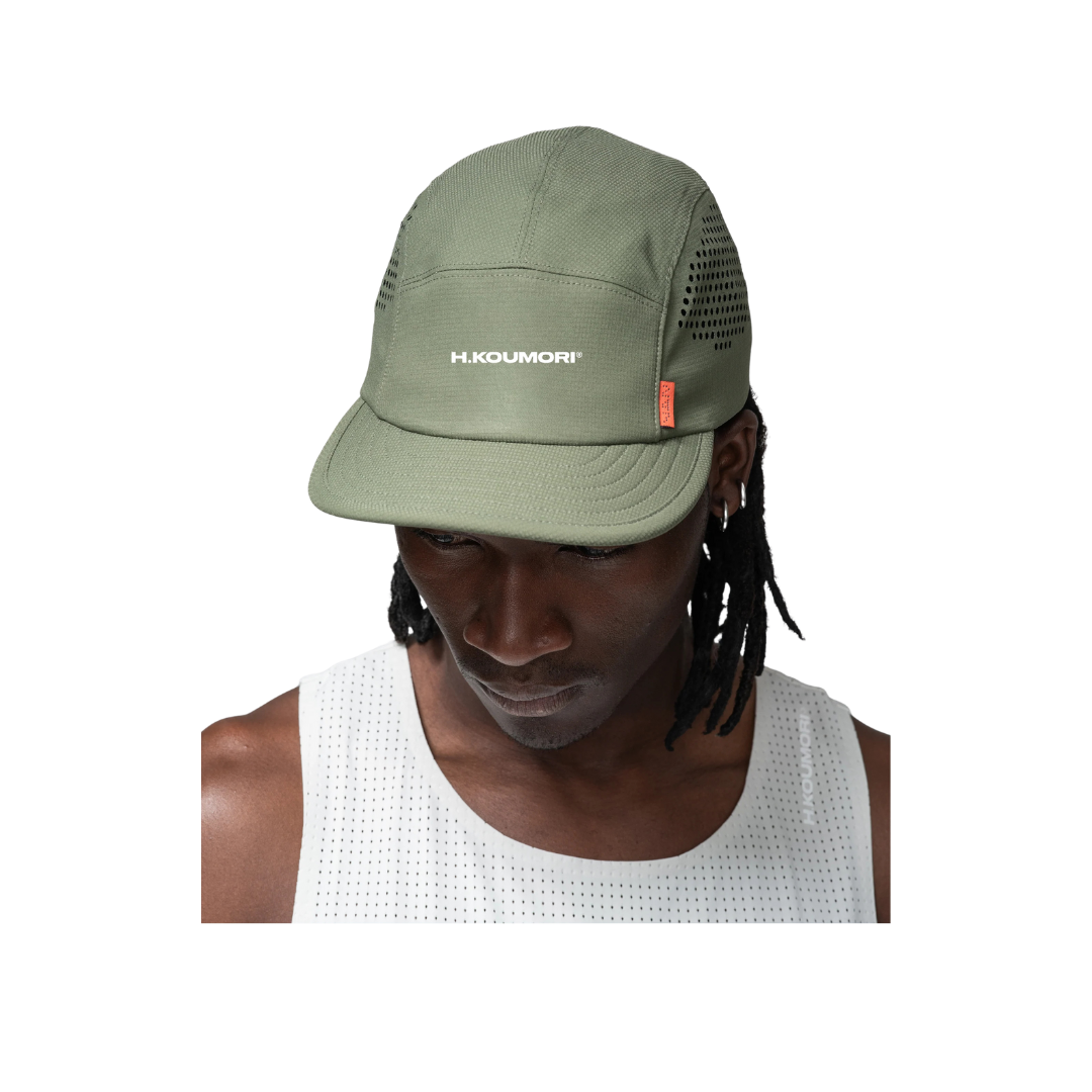 The Forest Green Laser Cut Cap is crafted from 100% polyester in a lightweight 5-panel design. Engineered with laser-cut side perforations for superior ventilation, it includes an adjustable back toggle for a customized fit. The front panel features a reflective H.KOUMORI logo, adding both visibility and a sleek technical look. Minimal yet functional, this cap delivers breathable comfort for runs while seamlessly fitting into everyday wear.