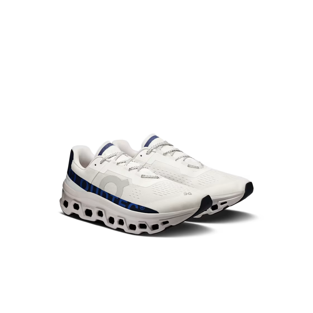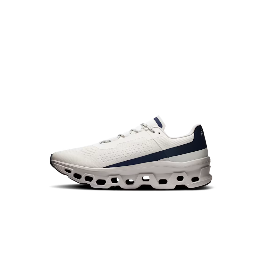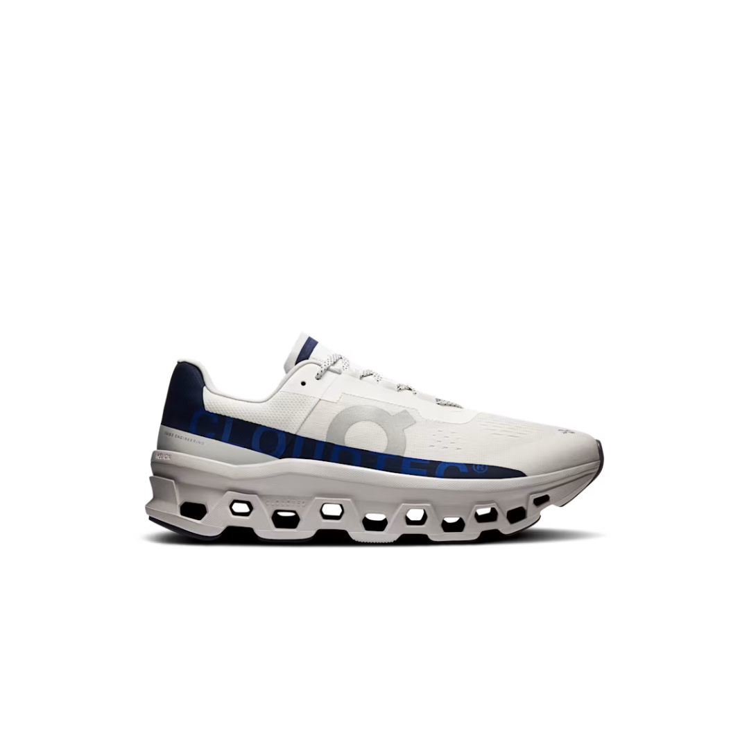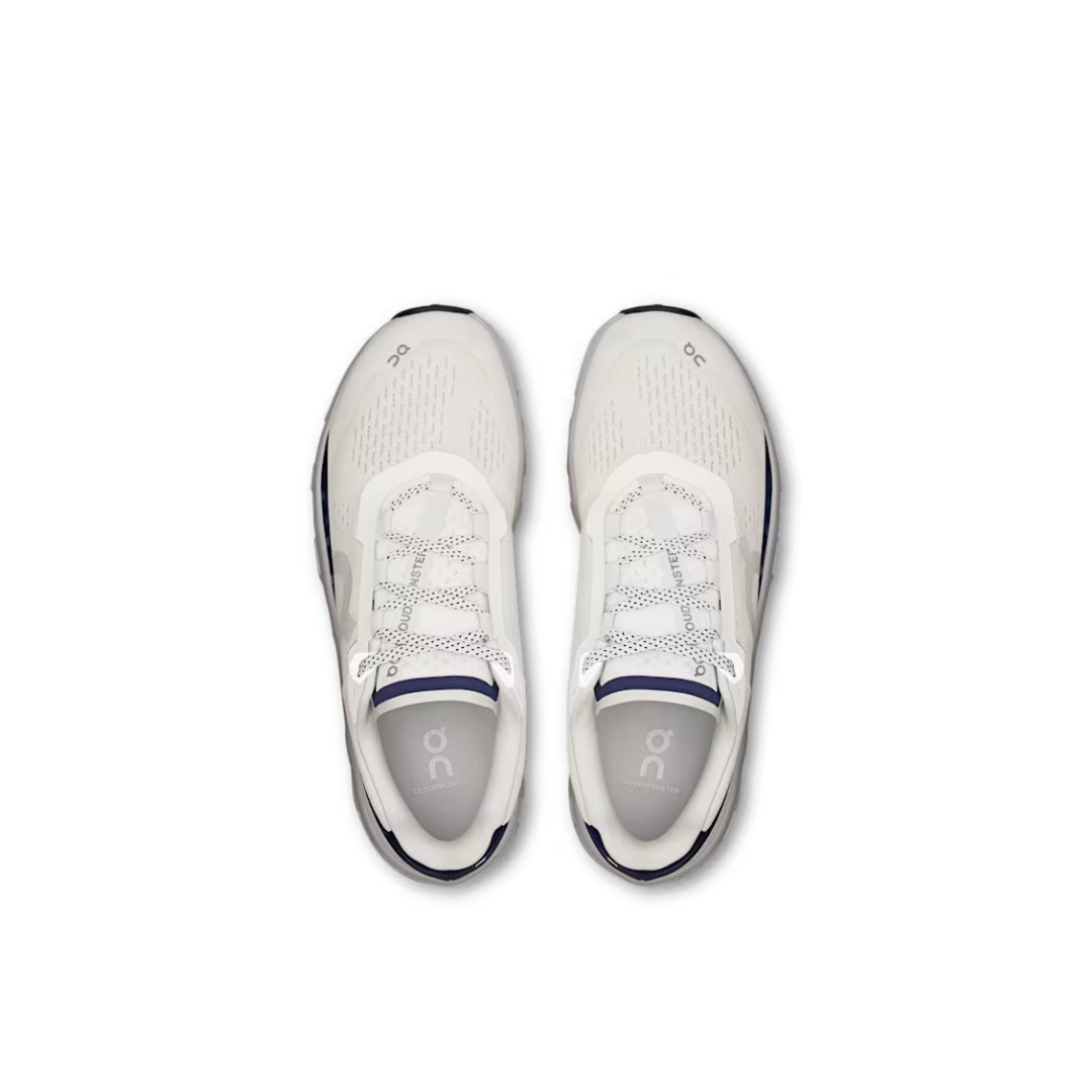 Introducing the On Running Cloudmonster in Ivory Midnight—where bold design meets ultimate comfort. These sneakers feature a striking ivory and deep midnight blue colorway, making them a standout choice for any outfit, whether you're hitting the gym or strolling through the city. Powered by On’s innovative CloudTec® cushioning technology, the Cloudmonster offers plush support and unbeatable comfort with every step, providing a soft, responsive feel that lasts all day. The breathable, lightweight upper is crafted with eco-conscious materials, ensuring your feet stay cool and dry. Perfect for runners and style-conscious individuals alike, the Cloudmonster combines high-performance functionality with modern elegance.