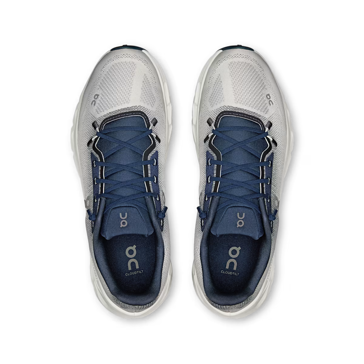 The On Running Cloudtilt in Midnight | Ice combines advanced cushioning technology with a sleek, lightweight design to enhance running efficiency. Its responsive CloudTec sole adapts to your stride, providing optimal energy return and support on varied surfaces. Engineered for expert runners seeking precision and comfort, this model ensures a stable yet dynamic ride, helping you maintain speed and reduce fatigue during intense training sessions.